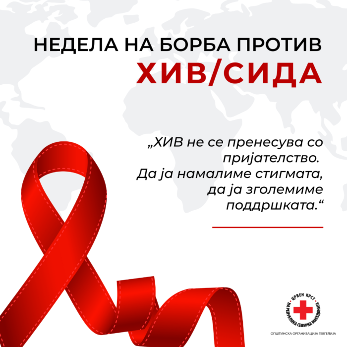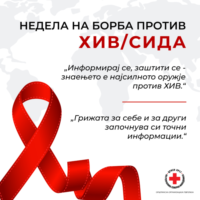 Црвен крст на Република Северна Македонија – Општинска организација Гевгелија, во периодот од 1-7 декември 2025 година согласно календарот на традиционални активности ja одбележа Неделата на борба против ХИВ/СИДА, под мотото “Едуцирај се, превенирај ХИВ/СИДА”.